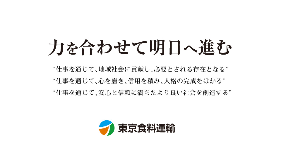 東京食料運輸のホームページをご覧頂きまして、ありがとうございます。 当社は、主たる取扱い貨物をお米、小麦粉、砂糖の主要食糧に特化して、首都圏を中心にトラックによる輸配送サービスを提供しています。本店所在地にあります東京食料センター(倉庫会社)と連携して、保管業務にも臨機に対応しています。 トラック貨物輸送の基本となる安全運行の実現を最優先事項としたうえで、無理のない、効率的な配車を行なっています。環境等にも配慮して、常に最新の車両、機器等を導入し続けています。 主要食糧は、生命の源です。 生命を運ぶ誇りをもって、微力ながら社会に貢献して参ります。 笑顔が溢れる食卓のために、今日もそして明日も運び続けます。 長い間にわたり、お得意様をはじめ関係先の皆様のご協力、ご鞭撻を賜りながら今日まで歩んで参りました。心から感謝申し上げます。 今後とも皆様からの変わらぬご愛顧、ご指導のほどをお願い申し上げます。